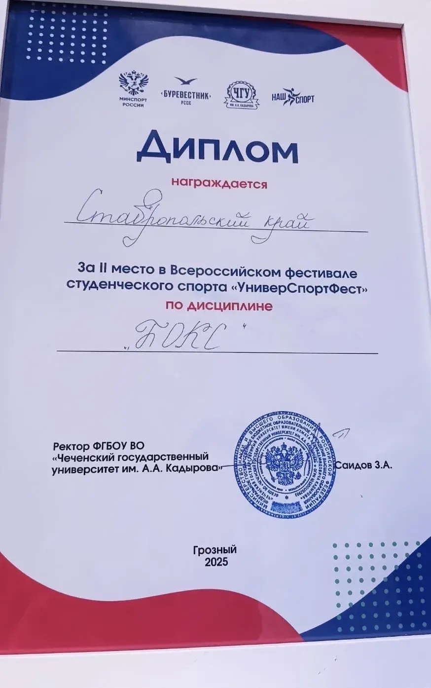 11.12.2025 В г. Грозный прошел Всероссийский фестиваль студенческого спорта "УниверСпортФест".Студенческая сборная Ставропольского края завоевала 2 командное мест в соревнованиях по боксу. Результаты выступлений в личном зачете: