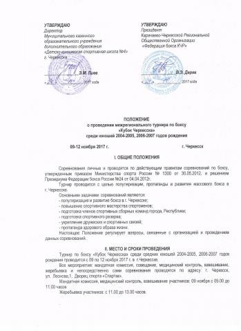 Положение о проведении межрегионального турнира по боксу "Кубок Черкесска" среди юношей 2004-2005, 2006-2007 годов рождения